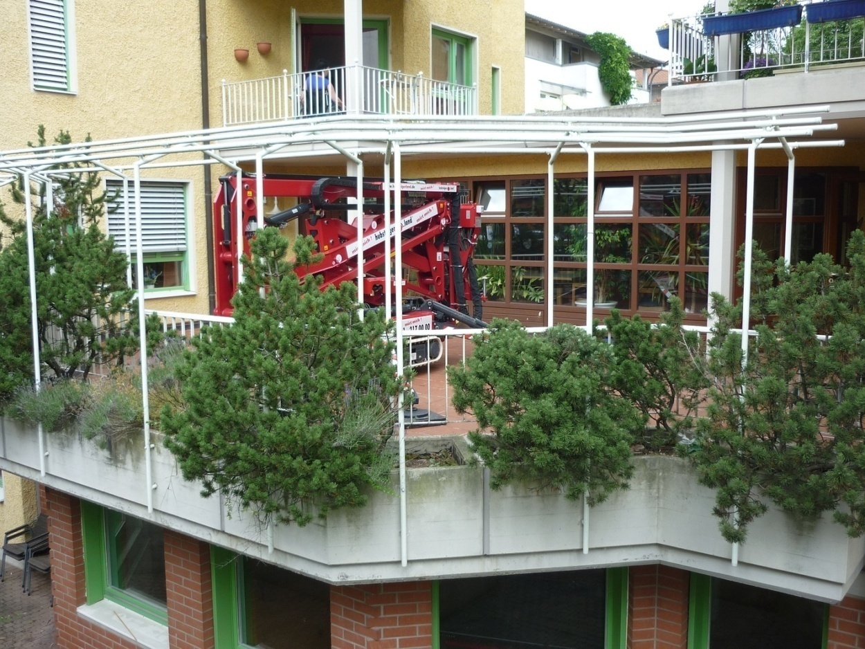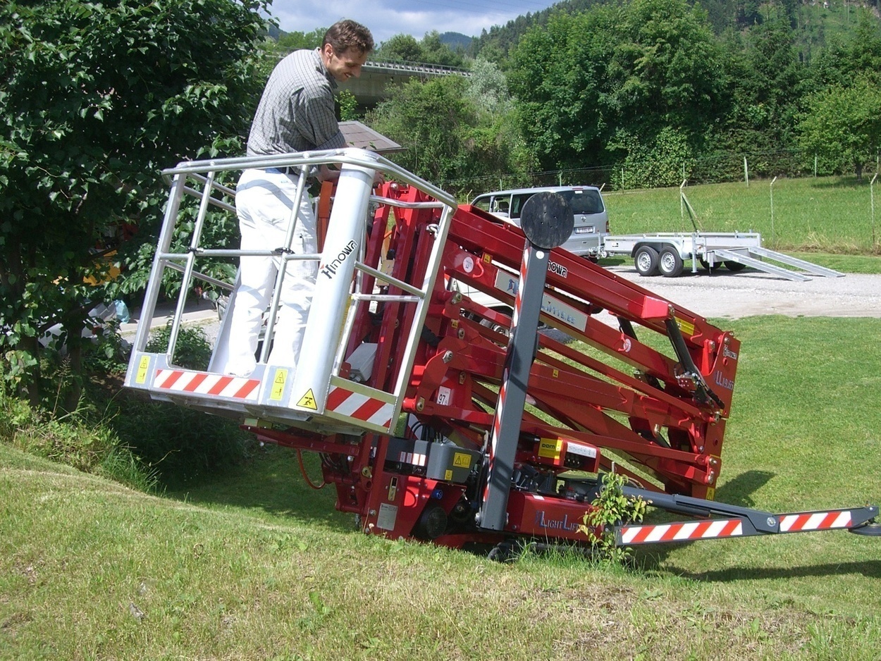 Um größtmögliche Flexibilität bei schwierigen räumlichen Verhältnissen zu gewährleisten, setzen wir kompakte Geräte mit einer Höhe von unter 200cm und einer Durchfahrtsbreite von nur 85cm ein. Des Weiteren sind die Hubsteigerfahrzeuge geländegängig.