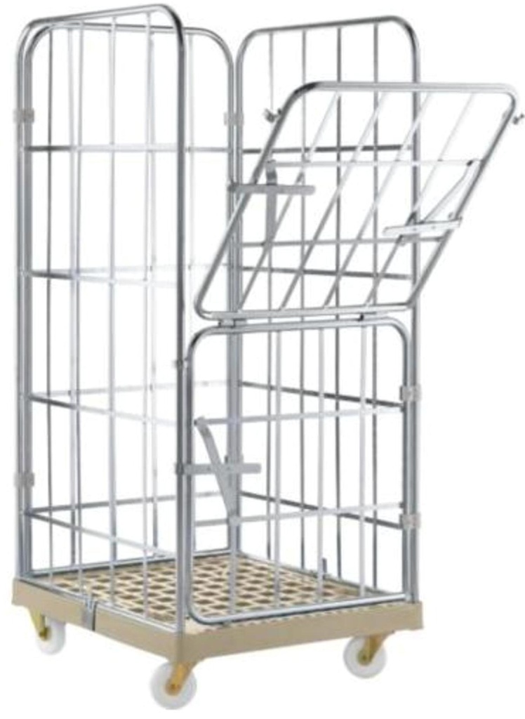 Im modularen Baukastensystem mit einer innovativen Klemm-Technik gefertigt, haben sie eine besonders glatte Oberfläche mit einer hervorragenden Widerstandsfähigkeit, bedingt durch eine galvanisch verzinkte Oberfläche. Einsetzbar im Temperaturbereich von +60 bis -10° C. Serienmäßig mit Kunststoff-Bodenplatten mit 2 Metallschienen als Rahmenversteifung (Material HDPE) und 2 Lenk- und 2 Bockrollen (Kunststoff-Räder ø 108 mm) mit Fadenschutz und verschraubter Radachse.Maschenweite: 336 x 137 mm